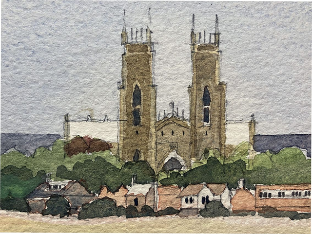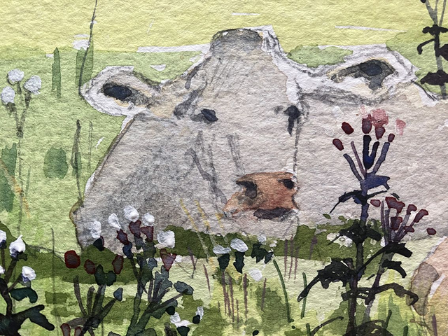 This is the third watercolour study showing the Minster from the Westwood in Beverley. Feel like there may be one more but perhaps looking towards Black Mill with cattle feeding. This again is a large 22 x 15 inch watercolour, one of my favourite sizes. It captures a moment in time with thistles evident in the foreground. Their absence beyond reflects the recent activity by the Neatherd, Z, who methodically traveled up and down in her green tractor towing a wide grass cutter. The presence of 'thunder' flies, tiny black insects was a distraction especially as they were out in great numbers, some getting onto the eyelids.