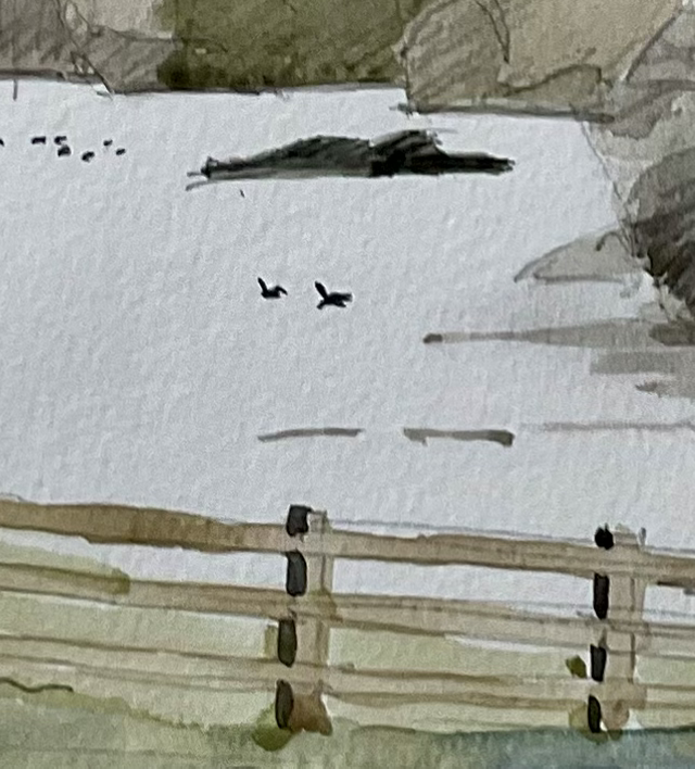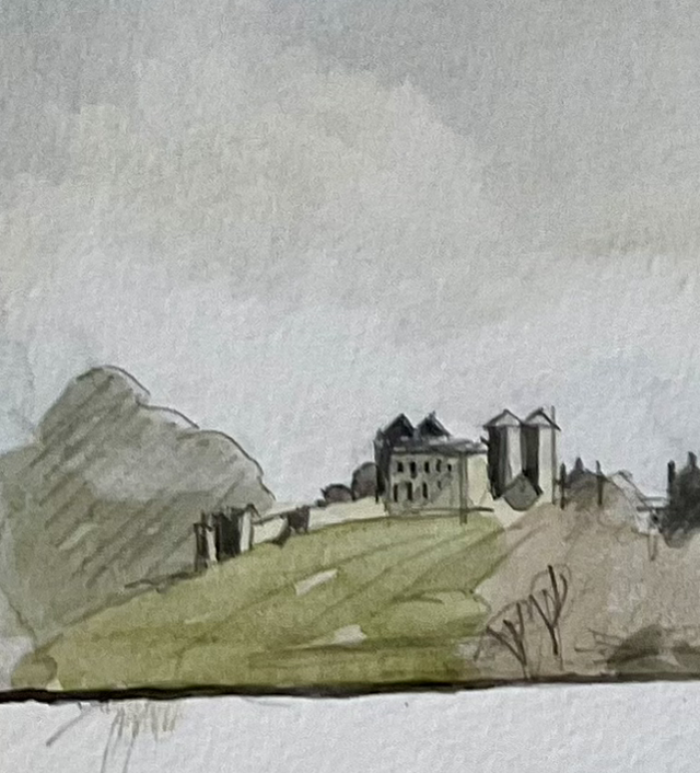 This is loosely done on watercolour paper 300gsm, so it did not need stretching. This is another, older watercolour sketch ( 2008) showing Castle Howard from the road, on the west of the house leading to Slingsby and on to Hovingham. I spotted this view and was impressed at seeing the house emerging from, and dominating the landscape. The lake in the foreground is well populated with coots and other waterfowl.