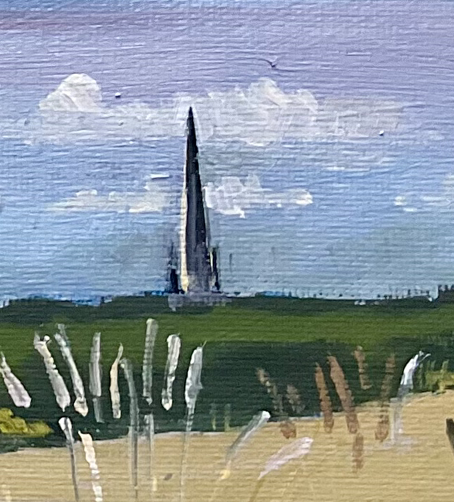 A view looking over a set-aside crop towards St. Mary’s Church spire at South Dalton.