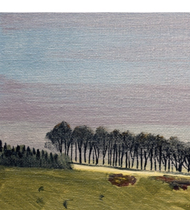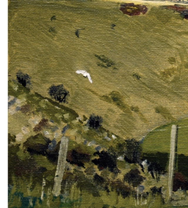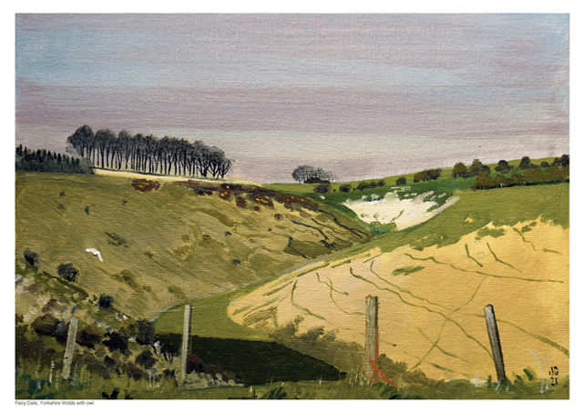 This is taken from an original plein air painting. The owl appeared just as I finished, and rather like Turner with his buoy, I ‘slodged’ it in quickly. It is essentially a simple painting that so accurately captures the essence of the dry Wolds valleys.