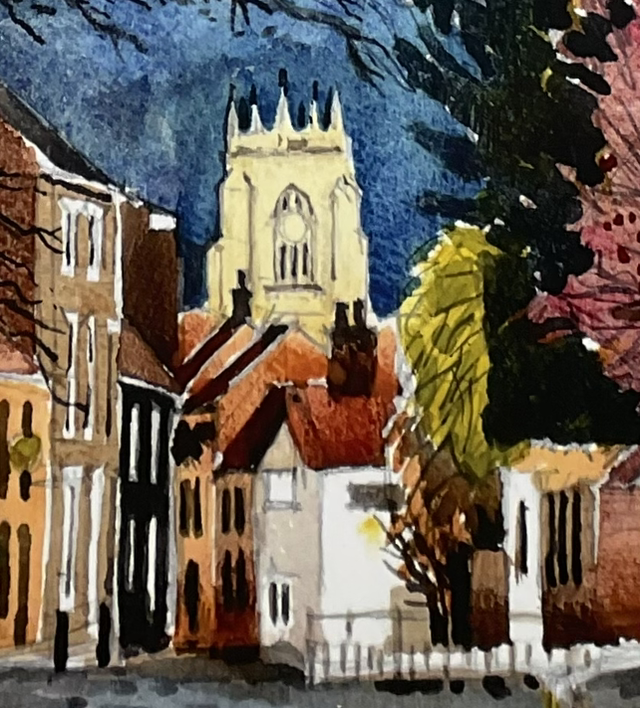 Lairgate with St.Mary’s tower. Print A3 size from a watercolour sketch.