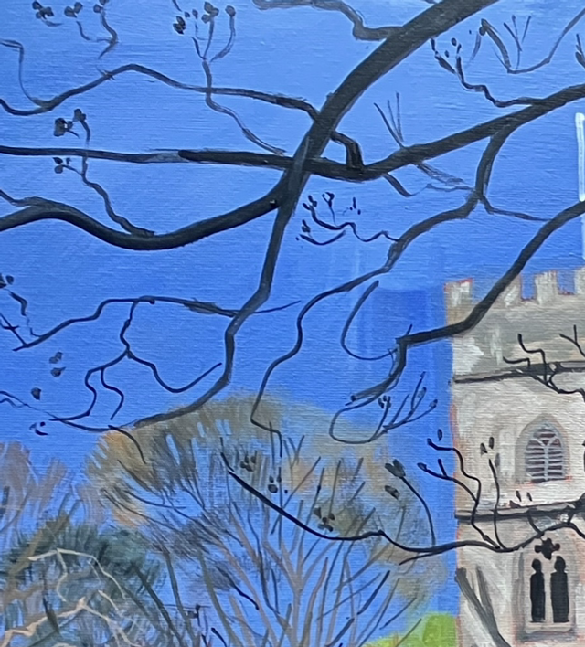 Langton Church at Easter. 1mx0.5m oil on stretched canvas.