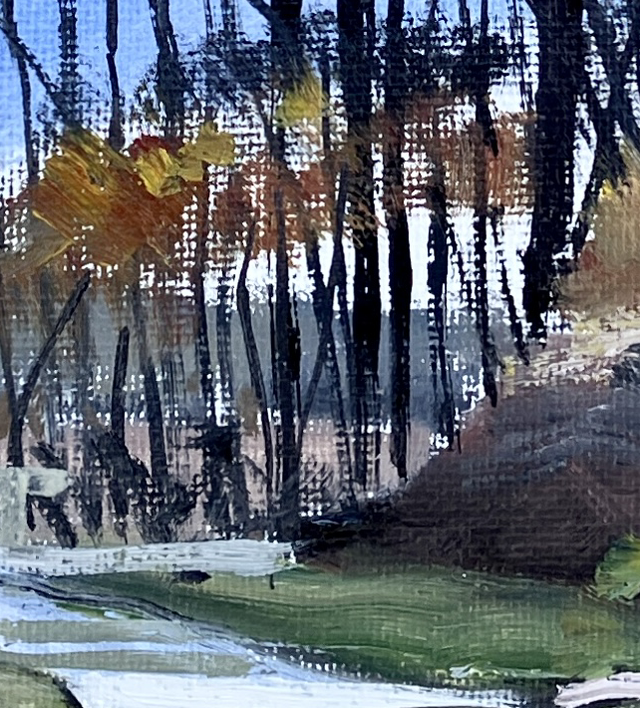 Loaningdale Junction woodland, 12x10 inch, oil on canvas.