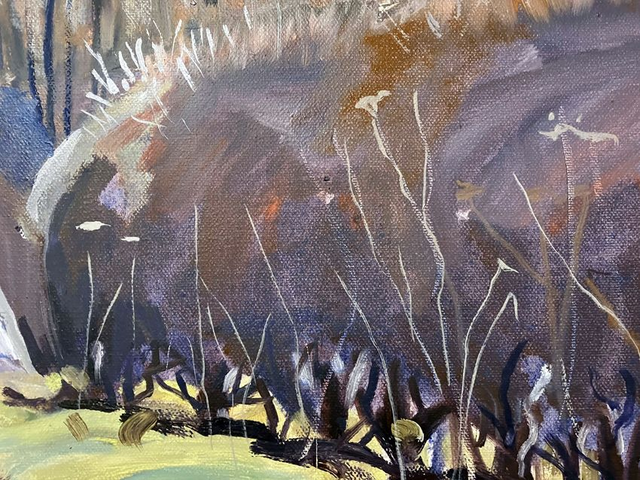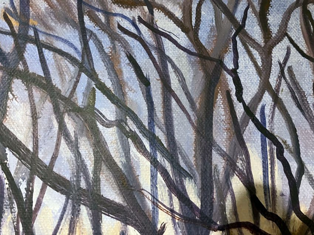 The view showing the trees at Loaningdale juction will be familier to people driving up from Warter. The area is quietly beautiful though in winter can offer challenges as the weather can sometimes hit the area hard. David Hockney painted some trees not far from here and will have seen these as he passed by. I intend to revisit this area and repaint the scene in different seasons as David has done ( Trees near Thixendale ). The painting can be viewed by arrangement, and reserved without obligation. It will be thoroughly dried and varnished by the end of January.