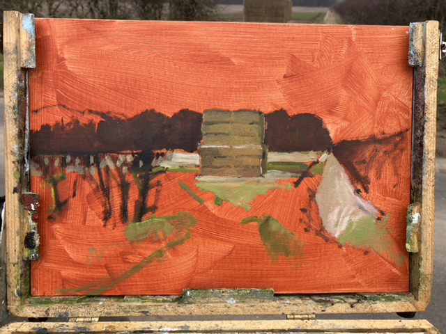 I found myself at Etton where I stopped to look at the building work on the old public house, The Light Dragoon. The pub had been closed for a long time and when building work started I was anxious that the building might be converted to housing as so many old pubs are. However, I discovered it was going to remain a pub. Wonderful news. It will be another venue to stop at after a painting trip.. I saw this stack of bales on the road to Etton West Wood farm. The weather forecast was for rain but I thought I would chance it. However the rain did arrive necessitating a quick finish. I had got enough done to leave it as it was, perhaps it lacks a little rigger detailing but I am happy with it. It captures the moment. The mid winter colours are grey sky dull yet there is some colour. As I stood looking, observing the subtlety of the colours I experienced a moment of mindfulness, a meditation of being with nature, in a way both physically and emotionally isolated, a reset.
