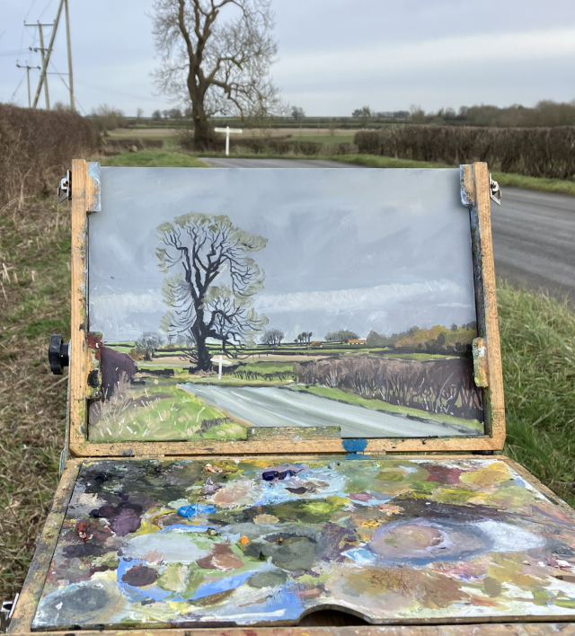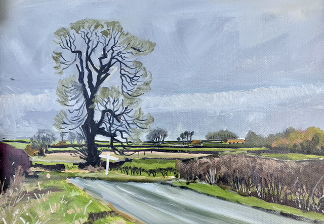 I have sketched this ash tree before, though not painted it. Today was cold and the sky grey. This area of the Wolds is very much made of gentle rolling land. It is a world away from the high Wolds near Huggate and Thixendale. I can just see a friends house and make out the pine trees near his garage. I will not have time to call today but hope to see him soon. How sad it will be to see the ash trees disappear, many are being felled as they pose a risk to people passing on nearby roads. They are all suffering from ash die back disease.